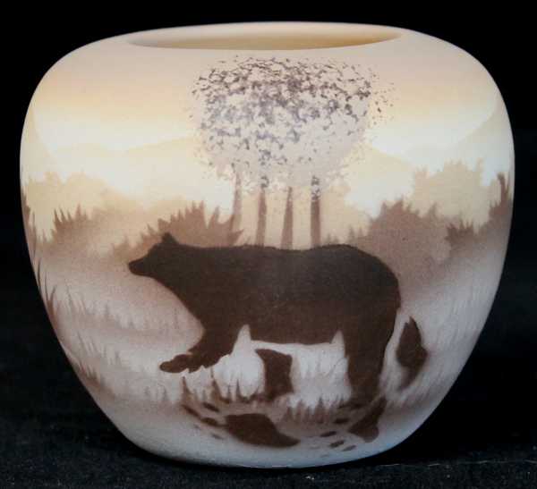Enjoy a visit from the wildlife in the rolling backwoods. Silhouetes of buffalo, while tailed deer and black bear are combined with their tracks that encircle the piece.