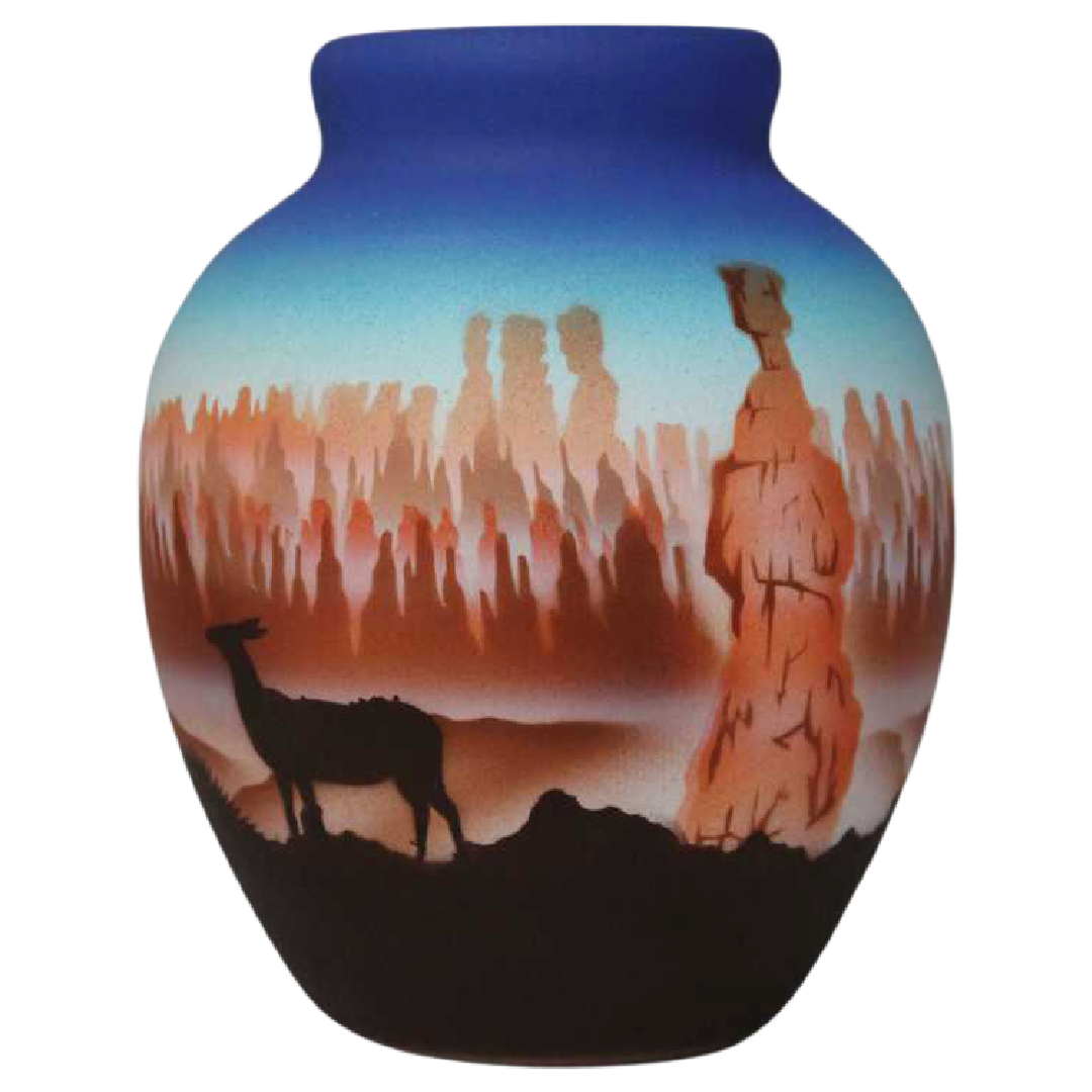 Bryce Canyon is one of Utah's 'Mighty Five' national parks. The pottery features the iconic Thor's Hammer hudu.