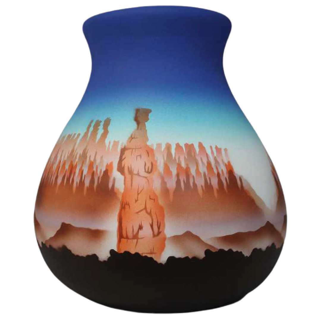 Bryce Canyon is one of Utah's 'Mighty Five' national parks. The pottery features the iconic Thor's Hammer hudu.